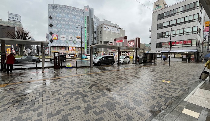 西口に出て、右に曲がりロータリーを道なりに進みます。