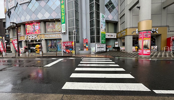 横断歩道を渡り、左に曲がります。